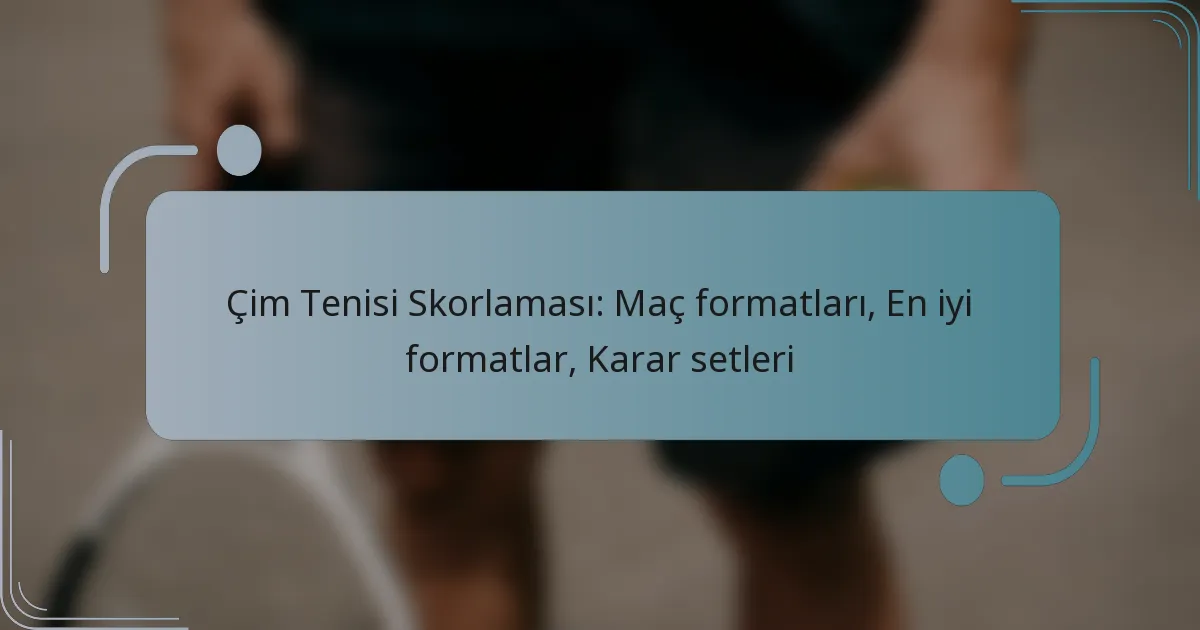 Çim tenisinde, oyun tarzını ve stratejileri önemli ölçüde etkileyen çeşitli maç formatları bulunmaktadır. Bu formatlar, esas olarak oyuncu sayısına ve puanlama sistemlerine göre kategorize edilir. En yaygın formatlar, bir oyuncunun zafer kazanmak için kazanması gereken set sayısını belirleyen üç set üzerinden en iyi veya beş set üzerinden en iyi formatlarıdır. Ayrıca, oyuncuların eşit durumda olduğu durumlarda belirleyici setler devreye girer ve genellikle kazananı belirlemek için belirli bir fark gerektirir.