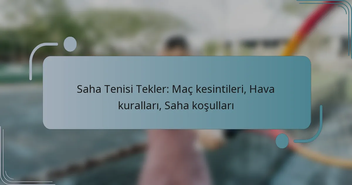 Çim tenisinde tekler maçları, olumsuz hava koşulları ve oyuncu sakatlıkları gibi çeşitli nedenlerle kesintiye uğrayabilir. Bu kesintileri yöneten kuralları anlamak, hem oyuncular hem de seyirciler için önemlidir, çünkü bu kurallar oyunun nasıl ve ne zaman devam edeceğini belirler. Yağmur, rüzgar ve aşırı sıcaklık gibi hava faktörleri, maç programını ve oyuncu performansını önemli ölçüde etkileyebilirken, kort koşulları da oyun akışını ve sonuçlarını etkilemede hayati bir rol oynamaktadır.