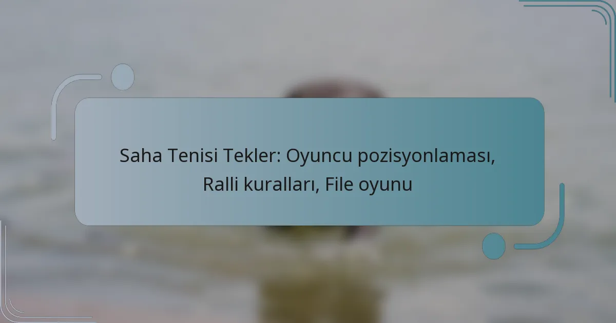 Tekler tenisinde oyuncuların hem saldırı hem de savunma yeteneklerini optimize etmek için kortta stratejik bir şekilde konumlanmaları gerekmektedir. Ralli kurallarını anlamak, adil oyunu sürdürmek ve maç deneyimini sorunsuz hale getirmek için esastır. Ayrıca, etkili file oyunu, avantaj elde etmek ve puanları hızlı bir şekilde tamamlamak için hayati öneme sahiptir; bu da hassas zamanlama ve teknik gerektirir.